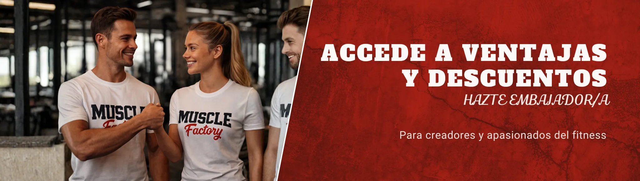 Conviértete en miembro de nuestro equipo y consigue un montón de beneficios únicos para los embajadores de Muscle Factory BCN.
