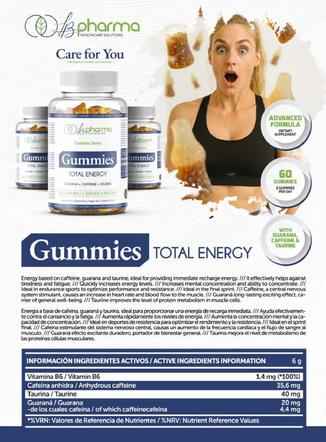 Energía inmediata y deliciosa. Gummies con sabor refrescante que activan cuerpo y mente al instante.