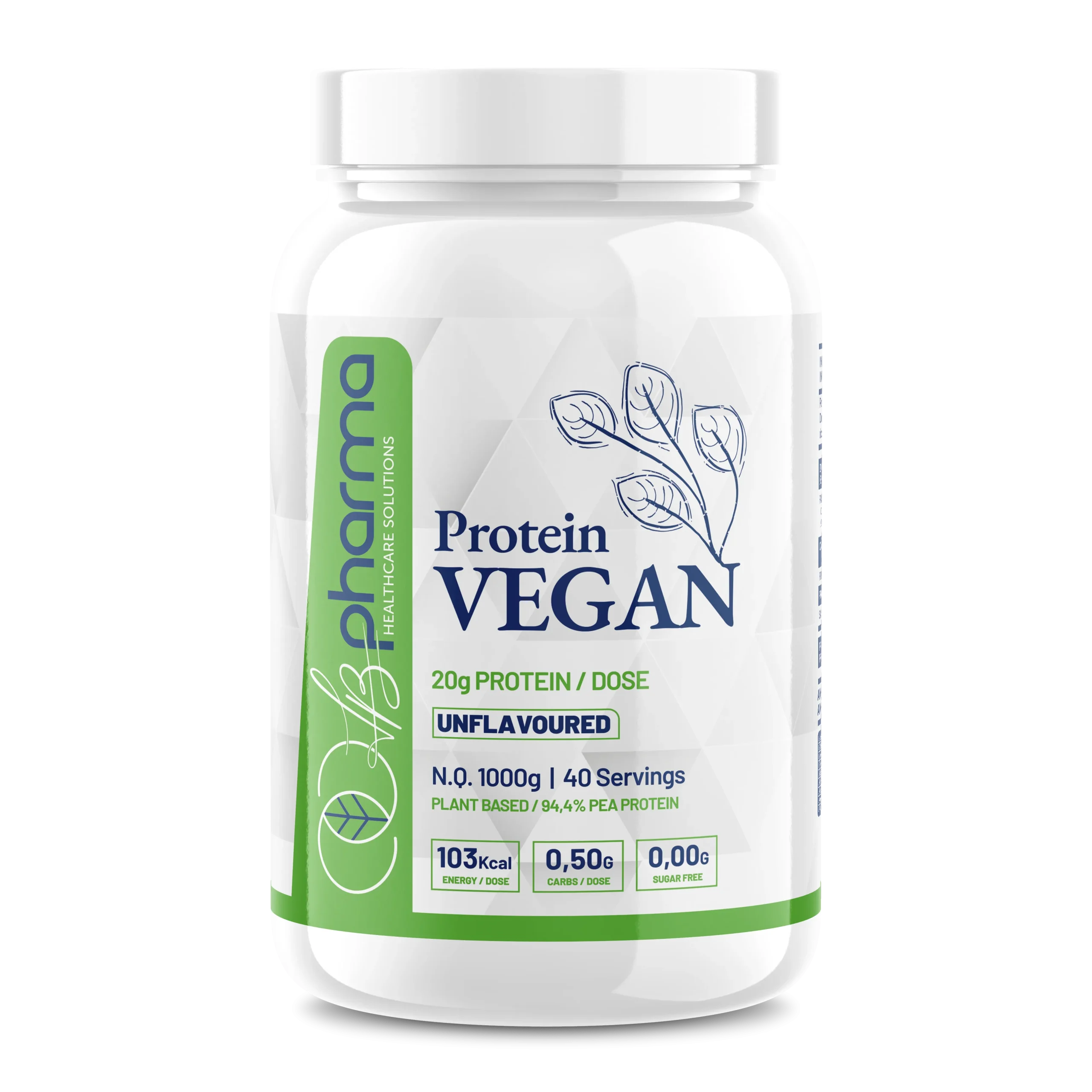 Proteína VEGAN de origen vegetal con 20 g de proteína por dosis, elaborada a partir de proteína de guisante (94,4 %). Sin azúcares, baja en carbohidratos y de fácil digestión.